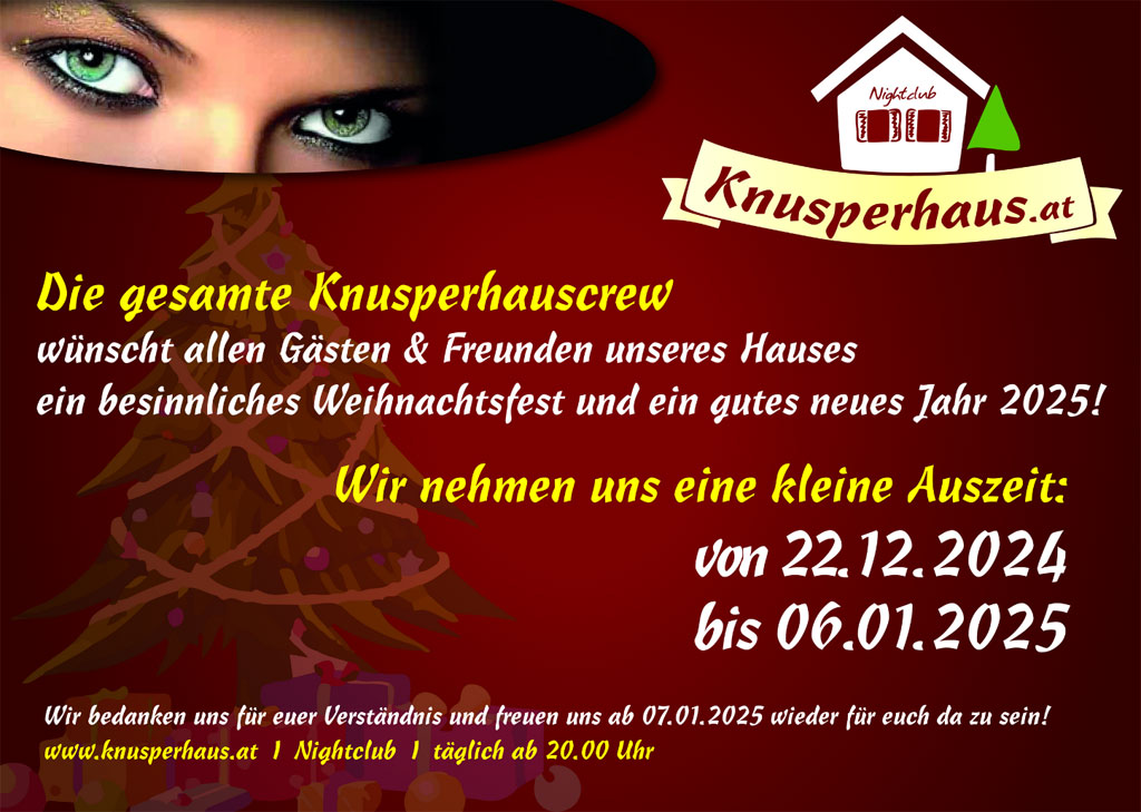 Das gesamte Knusperhaus Team und die Girls freuen sich auf Dein "Kommen", um mit Dir einen lustigen und entspannten Abend zu verbringen.